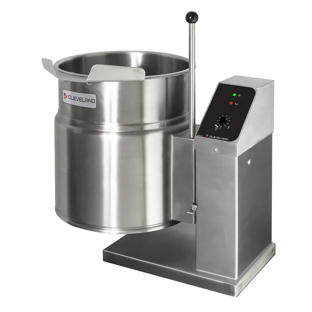 Elevate dining experience daily with the Cleveland KET12T@QS Electric Countertop Kettle. Designed for commercial restaurant use, this 12-gallon capacity kettle is a game-changer in the kitchen. Its 2/3 steam jacket design ensures even heat distribution, resulting in perfectly cooked dishes every time. The stainless steel exterior finish not only adds a touch of elegance but also guarantees durability and easy cleaning. With a lever-type tilt and support console on the right, this kettle offers convenience and efficiency during food preparation. Its splash-proof feature keeps your kitchen mess-free, while the field convertible 208/240v/60/3-ph power supply ensures compatibility with various electrical systems. Whether you're simmering soups, boiling pasta, or steaming vegetables, the Cleveland KET12T@QS Electric Countertop Kettle is the reliable and versatile choice for any commercial kitchen. Upgrade your restaurant's cooking capabilities with this top-of-the-line kettle.