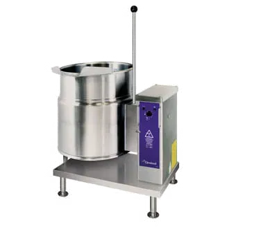 Introducing the Cleveland KET20T Electric Tilting Kettle, a premium tool for culinary excellence in commercial restaurants. With its 20-gallon (76L) capacity and 2/3 steam jacket design, this tilting kettle is perfect for high-volume cooking. The lever style tilting mechanism and anti-drip pour spout ensure precise control and mess-free pouring. The IPX6 water protection controls and self-locking marine style safety latch guarantee safety and durability in a busy kitchen environment. Made with stainless steel construction and a 316 series stainless steel liner, this kettle is built to withstand the demands of a commercial kitchen. The reinforced rolled rim and 6" stainless steel adjustable legs provide stability and ease of use. With a 50 PSI rating, this kettle delivers consistent and efficient cooking results. Elevate your culinary creations with the Cleveland KET20T Electric Tilting Kettle.