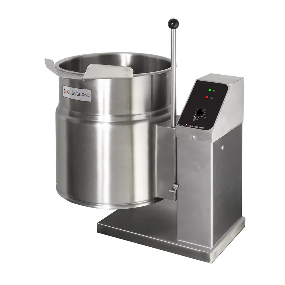 Upgrade your restaurant's capabilities with the Cleveland KET6T@QS Electric Countertop Kettle. This reliable and efficient kettle is designed for commercial restaurant use, offering a 6-gallon capacity and a 2/3 steam jacket design. The stainless steel exterior finish ensures durability and easy cleaning, while the tilting feature allows for convenient pouring and serving. With a splash-proof design and a support console on the right, this kettle is built to withstand the demands of a busy kitchen. The KET6T@QS operates on 208/240v/60/3-ph power, and it is field convertible for added flexibility. Whether you need to boil water, cook soups, or prepare sauces, this electric kettle is a versatile and essential tool for any commercial kitchen. Upgrade your restaurant's efficiency and productivity with the Cleveland KET6T@QS Electric Countertop Kettle.