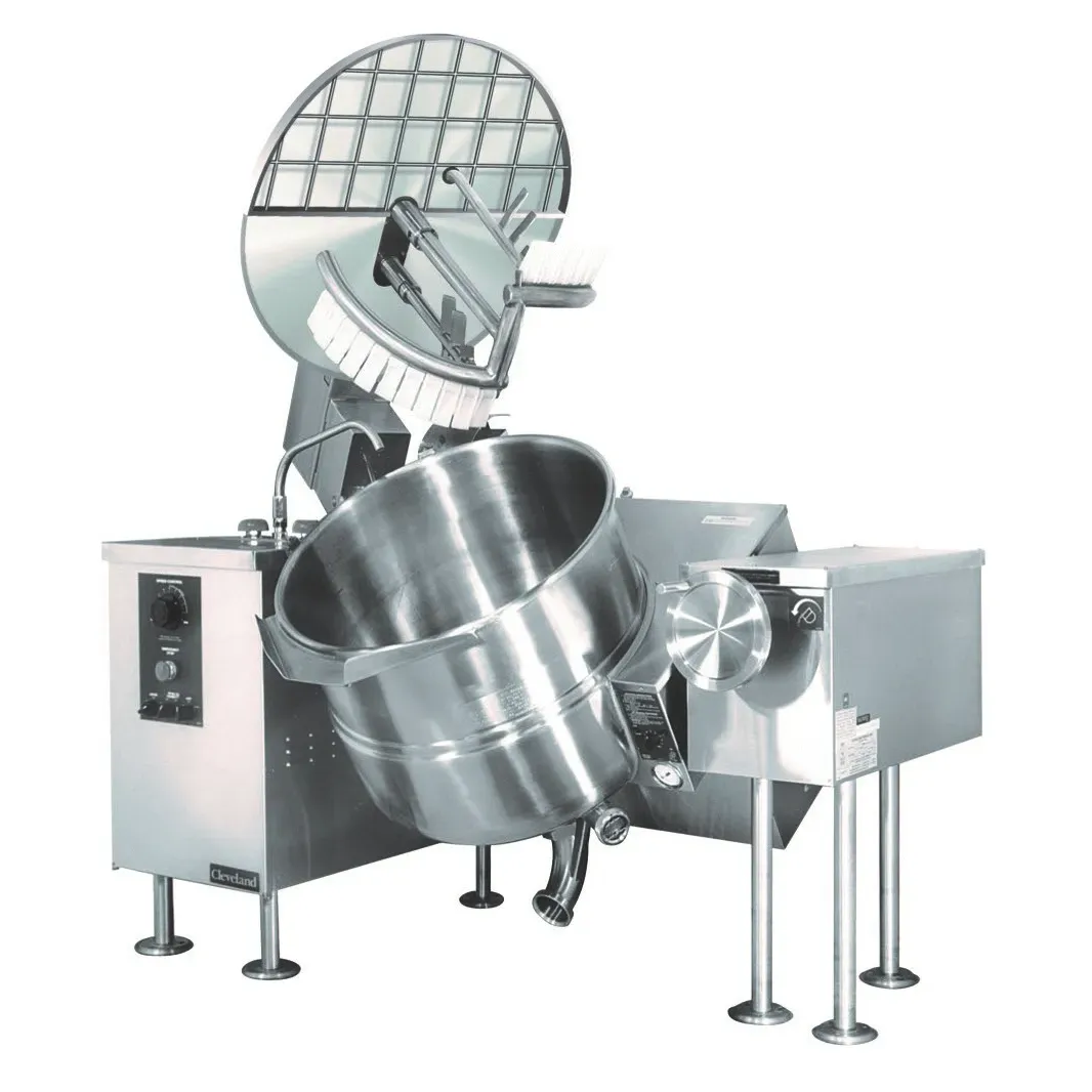Introducing the Cleveland MKGL40T Kettle Mixer, Gas. Set new standards in food service with this powerful and versatile kitchen essential. Designed for commercial restaurant use, this 40-gallon capacity kettle/mixer is perfect for preparing large quantities of soups, sauces, and stews. Its 2/3 steam jacket design ensures even heat distribution, while the tilt-type feature allows for easy pouring and cleaning. With automatic ignition and solid-state temperature control, you can achieve precise cooking results every time. The variable ratio control between the scraper and agitator ensures thorough mixing and blending of ingredients. The two-piece cover with a screen keeps your food safe and allows for easy monitoring. This kettle mixer also includes a 3" diameter quick opening butterfly valve, strainer, and hot/cold faucet for added convenience. Made with durable stainless steel construction and boasting a powerful 140,000 BTU, the Cleveland MKGL40T is a reliable and efficient addition to any commercial kitchen.