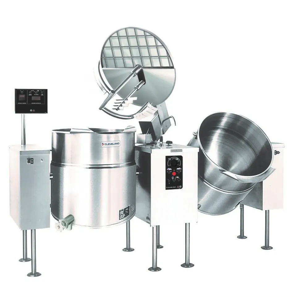 Stay competitive with versatile solutions with the Cleveland TMKEL100T Kettle Mixer. This electric twin unit is designed to meet the demands of a commercial restaurant kitchen. With a twin 100-gallon capacity and a 2/3 steam jacket design, this kettle mixer allows for efficient and precise cooking. The sweep and fold agitator ensure thorough mixing, while the variable speed control allows for customization based on your recipe needs. The two-piece cover with a screen keeps your ingredients contained while allowing for easy monitoring. The H/C faucet and 2" tangent draw-off make it convenient to dispense your creations. Made with stainless steel construction and an open leg base, this kettle mixer is built to withstand the rigors of a busy kitchen. Trust Cleveland for reliable and high-quality equipment that will elevate your restaurant's culinary capabilities.