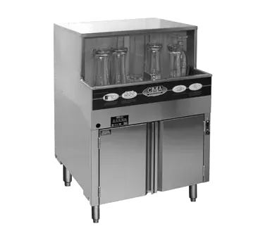 Unleash culinary creativity with the CMA Dishmachines GW-100 Glasswasher. This high-performance glasswasher is designed to meet the demands of a busy commercial restaurant. With its low temperature chemical sanitizing feature, it can wash up to 1000 2-1/2" glasses per hour, ensuring a constant supply of clean and sparkling glassware for your customers. The built-in chemical pumps with primer switches and the optional rinse temperature control provide precise and efficient cleaning results. The glass activated on/off stop and the front-mounted drain tray and scrap collector make operation and maintenance a breeze. The double-walled stainless steel construction ensures durability and longevity, while the internal storage holds three 1-gallon containers of sanitizers, allowing for easy access and convenience. Trust CMA Dishmachines, a reputable vendor in the industry, and invest in the GW-100 Glasswasher to elevate your restaurant's beverage service to new heights.