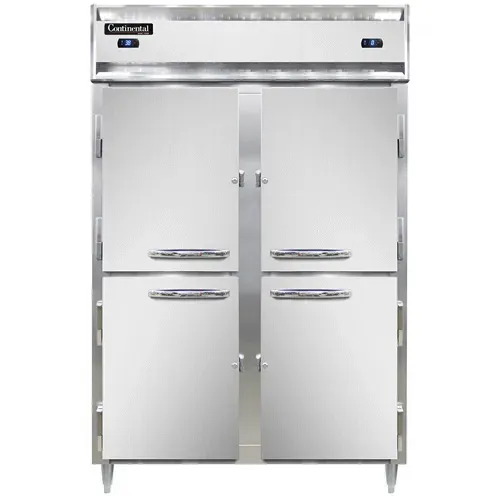Kitchen innovation at its best, the Continental Refrigerator D2RFNSSHD is a must-have for any commercial restaurant. This designer line refrigerator/freezer is a two-section, reach-in unit that combines functionality with style. Its stainless steel exterior and interior not only give it a sleek and professional look but also make it durable and easy to clean. The standard depth cabinet and narrow half-height solid doors maximize space efficiency in the kitchen, while the electronic control with a digital display allows for precise temperature management. With dual 1/4 and 1/3 HP compressors, this refrigerator/freezer ensures optimal cooling performance. It is cETLus and NSF certified, guaranteeing its safety and quality. Made in the USA, this Continental Refrigerator is a reliable and long-lasting addition to any commercial kitchen. Whether you need to store ingredients or keep prepared dishes fresh, this reach-in refrigerator/freezer is the perfect solution.