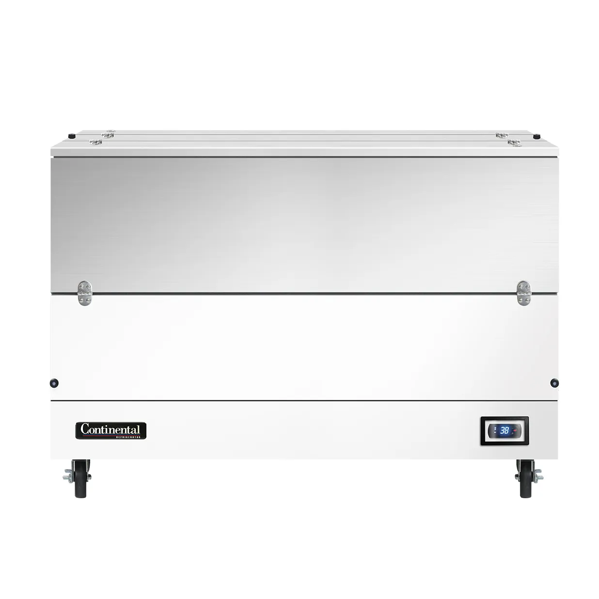 Equip your kitchen for success with the Continental Refrigerator MC5NDCW Milk Cooler / Station. This top-of-the-line milk cooler is designed to meet the needs of commercial restaurants, ensuring that your dairy products are stored at the perfect temperature. With a capacity to hold either 16 crates measuring 13" x 13" x 11" or 10 crates measuring 19" x 13" x 11", this cooler provides ample space for all your milk storage needs. The stainless steel top, lids, and doors not only give it a sleek and professional look but also ensure durability and easy cleaning. The electronic control with a digital display allows for precise temperature management, while the hi-low alarm and hi/low temperature alarm provide added peace of mind. Made in the USA and certified by cETLus and NSF, this milk cooler is a reliable and efficient addition to any commercial kitchen. Don't compromise on quality - choose the Continental Refrigerator MC5NDCW Milk Cooler / Station for your restaurant today.