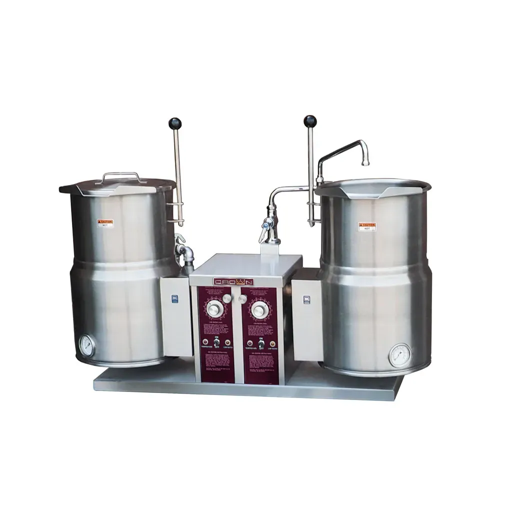 Stay competitive with innovative culinary gear with the Crown Steam EC-10TW-2 Twin Electric Counter Tilt Kettle. This 10-gallon, 2/3 jacketed kettle is a game-changer for commercial restaurants. With 12Kw of power on each side, this kettle ensures fast and efficient cooking, allowing you to keep up with high-demand orders. The twin electric design allows for simultaneous cooking, saving you valuable time in the kitchen. The counter tilt feature makes it easy to pour out contents, reducing the risk of spills and accidents. Crown Steam, a trusted name in the industry, guarantees the quality and durability of this kettle. Whether you're simmering soups, boiling pasta, or making sauces, this kettle is a versatile addition to any professional kitchen. Invest in the Crown Steam EC-10TW-2 Twin Electric Counter Tilt Kettle and elevate your restaurant's cooking capabilities.