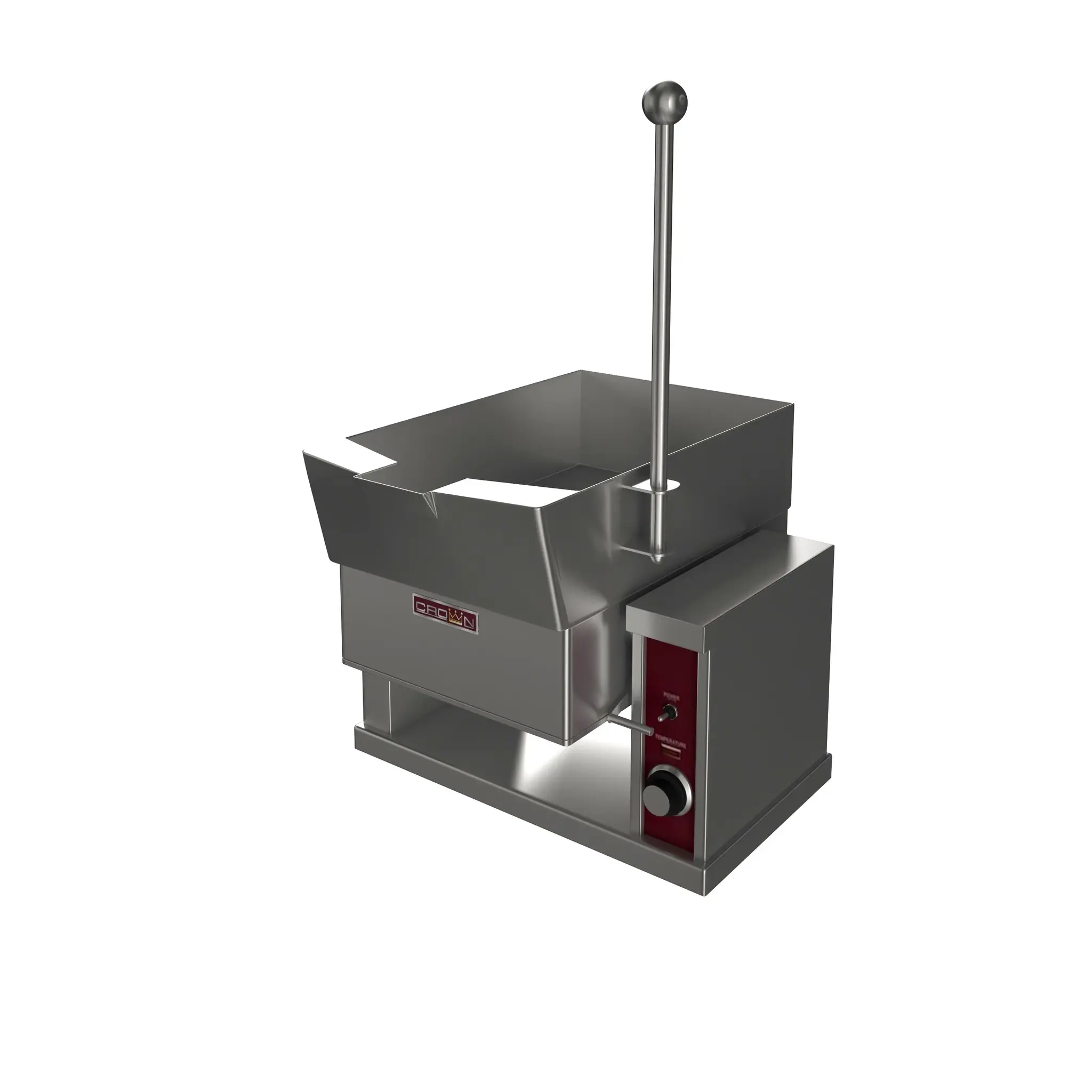 The GCTS-16 is a high-performance skillet designed for commercial kitchens that require reliability and precision. Constructed from one-piece, 10-gauge type 316 stainless steel, it features coved corners and a #4 exterior finish for a sleek, professional appearance, while the polished interior with etched gallon markings ensures easy portion control and effortless cleaning. The 3/4” triple-ply cooking surface, with a 3/8” thick aluminum core, guarantees even heat distribution across the entire cooking surface, ensuring consistent results every time. The pan is mounted on side pivots within sealed, stainless steel clad consoles, supported by a robust 10-gauge stainless steel base with a #4 finish. A stainless steel tilt handle with a heat-proof knob allows the pan to be tilted forward for easy removal of contents. For added convenience, the skillet includes a damper control that manages tilt and return movements, making tilting effortless and precise. Safety features include a tilt interlock that prevents inadvertent tilting of the pan, ensuring secure operation. The skillet’s controls are integrally mounted and include a power switch, solid-state thermostat, temperature pilot light, electronic ignition, ignition light, and a high-limit temperature cut-off for peace of mind. The burner automatically shuts off when the pan is tilted, providing an additional safety measure during operation. The GCTS-16 can be mounted on a 30-1/2” (775 mm) wide stainless steel stand with a sliding drain pan and stationary drain, allowing for easy draining and maintenance. With a temperature range of 100°F to 450°F (38°C to 232°C), this skillet offers versatile cooking capabilities to meet the demands of a busy kitchen.