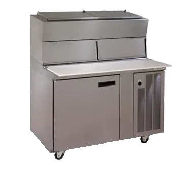 Unlock full potential with the Delfield 18648PDLP Refrigerated Counter, Pizza Prep Table. This single-section table is designed to enhance efficiency in commercial restaurant settings. With a 48" width and a capacity for four 12" x 20" pans, it offers ample space for pizza preparation. The stainless steel construction ensures durability and easy cleaning, while the removable hinged covers and flush mount LiquiTec raised rails provide convenience and flexibility. The 17" polyurethane cutting board allows for seamless slicing and dicing, while the self-contained side-mounted refrigeration system keeps ingredients fresh and ready for use. Equipped with a 1/5 & 1/3 hp compressor and R290 refrigerant, this table is both powerful and environmentally friendly. With its sleek design and reliable performance, the Delfield 18648PDLP is the perfect addition to any commercial kitchen.