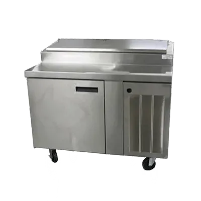 Inspire creativity and productivity with a unique addition to your commercial restaurant kitchen the Delfield 18648PTBMP Refrigerated Counter Pizza Prep Table. This single-section table is designed to streamline your pizza preparation process, with an 8.39 cubic feet capacity and a refrigerated pan rail that can hold up to six 1/3 pans. The 18 gauge stainless steel top provides a durable and hygienic workspace, while the stainless steel ends add a touch of elegance. With a side-mounted refrigeration system and R290 Hydrocarbon refrigerant, this table ensures optimal cooling performance while minimizing environmental impact. The 27" door and shelf offer convenient storage options, and the 6" casters make it easy to move the table around your kitchen. Trust Delfield, a reputable vendor in the industry, to deliver a high-quality and reliable product that will enhance your restaurant's efficiency and productivity.