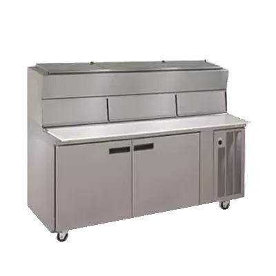 Infuse your commercial restaurant space with cutting-edge technology and unmatched results with the Delfield 18672PDLP Refrigerated Counter Pizza Prep Table. This two-section table is designed to meet the demands of a busy kitchen, with a spacious 72" width and a capacity for six 12" x 20" pans. The stainless steel construction ensures durability and easy cleaning, while the removable hinged covers and flush mount LiquiTec raised rails provide convenience and efficiency. The 17" polyurethane cutting board offers ample space for food preparation, and the self-contained side-mounted refrigeration system keeps ingredients fresh and ready for use. With an on/off switch and 4" casters for mobility, this table is a versatile addition to any commercial kitchen. Trust Delfield for quality and reliability in your restaurant operations.
