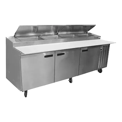 Optimize workspace dynamics with the Delfield 18672PTLP Refrigerated Counter, Pizza Prep Table. This state-of-the-art device is designed to enhance efficiency and productivity in commercial restaurant settings. With a spacious two-section design and a generous 72" width, it offers ample storage and prep space for busy kitchens. The 18.10 cubic feet capacity and three 12"x20" pan capacity ensure you have plenty of room to store and organize ingredients. The 18 gauge stainless steel top with LiquiTec refrigerated pan rail keeps your ingredients fresh and easily accessible. Equipped with two shelves, two 27" doors, and a 20" cutting board, this prep table provides convenience and versatility. The side-mounted refrigeration system and 6" casters make it easy to move and clean. Trust Delfield, a reputable vendor in the industry, to deliver a high-quality and reliable product that meets cUL, UL, and NSF 7 standards. Upgrade your restaurant's efficiency with the Delfield 18672PTLP Refrigerated Counter, Pizza Prep Table.