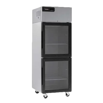 Unleash potential with a versatile companion. Introducing the Delfield GBR2P-GH Reach-In Refrigerator, a must-have for any commercial restaurant. With its sleek stainless steel front and sides, this refrigerator exudes durability and style. The four half-height glass doors not only provide easy access to your stored items but also showcase your delectable offerings to customers. The LED interior lighting illuminates the contents, making it easy to find what you need. The digital temperature display and controls ensure precise temperature management, keeping your ingredients fresh and safe. With six epoxy coated wire shelves and a pilaster with shelf clips, you can customize the storage space to suit your needs. The top mount refrigeration system and GreenGenius R290 Hydrocarbon refrigerant guarantee efficient cooling while being environmentally friendly. Equipped with 5" casters, this refrigerator is easy to move and clean. Trust Delfield to deliver exceptional quality and performance for your commercial kitchen.