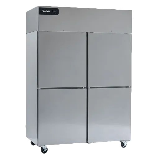 Transform your restaurant operations into a hub of innovation with the Delfield GBR2P-SH Reach-In Refrigerator. Designed for commercial restaurant use, this two-section refrigerator offers a spacious 46.0 cubic feet of storage capacity, allowing you to keep your ingredients fresh and organized. The four half-height solid doors provide easy access to your supplies, while the LED interior lighting ensures visibility even in dimly lit environments. With digital temperature display and controls, you can easily monitor and adjust the temperature to meet your specific needs. The six epoxy coated wire shelves, along with the pilaster and shelf clips, offer flexible storage options. Made with a stainless steel front and sides, and an aluminum back and interior, this refrigerator is built to withstand the demands of a busy kitchen. The top mount refrigeration system and GreenGenius R290 Hydrocarbon refrigerant ensure efficient cooling while being environmentally friendly. Complete with 5" casters for easy mobility, this ENERGY STAR certified refrigerator is a must-have for any commercial restaurant.