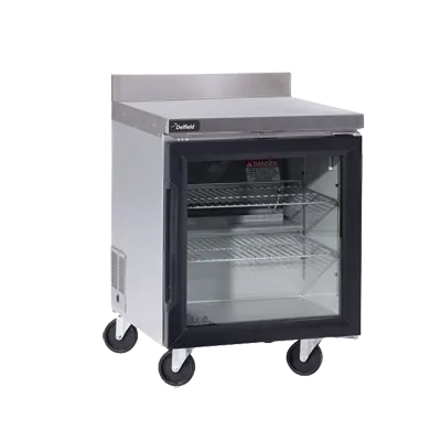 Give customers a taste of perfection with a unique upgrade. Introducing the Delfield GUR48BP-G Refrigerated Counter, Work Top. This two-section worktable refrigerator is designed to meet the demands of a busy commercial restaurant. With a spacious 48" width and 12.5 cubic feet capacity, it provides ample storage for your ingredients and prepared dishes. The two glass doors allow for easy visibility and access to your items, while the gray epoxy coated shelves offer durability and organization. The 4" backsplash helps to prevent spills and messes, keeping your workspace clean and efficient. The LED interior lighting illuminates the interior, making it easy to locate items even in low-light conditions. Made with stainless steel top and front, aluminum sides, and galvanized back and bottom, this unit is built to withstand the rigors of a commercial kitchen. The gray coated aluminum interior sides and anodized aluminum bottom ensure easy cleaning and maintenance. Equipped with 5" casters, including 2 locking and 2 non-locking, this refrigerator is easy to move and secure in place. The rear-mounted refrigeration system and GreenGenius R290 Hydrocarbon refrigerant ensure optimal cooling performance while being environmentally friendly. With its ENERGY STAR certification, this unit is not only efficient but also helps you save on energy costs. Upgrade your restaurant's refrigeration capabilities with the Delfield GUR48BP-G Refrigerated Counter, Work Top.