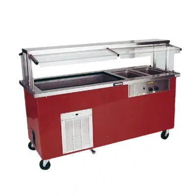Embrace the future of technology and craftsmanship with the Delfield KH4CR-96-BP Serving Counter. Designed for commercial restaurant use, this hot and cold serving counter is a game-changer in the foodservice industry. With its 96" length and four hot food wells, it provides ample space to keep your dishes at the perfect temperature. The Bloomington cooled base, made of durable fiberglass, ensures efficient cooling and easy cleaning. The 14 gauge stainless steel top adds a touch of elegance and durability to the counter. Equipped with self-contained refrigeration using R404A, this counter guarantees optimal food safety and freshness. The 5" swivel casters allow for easy mobility, making it convenient to rearrange your restaurant layout. With certifications from cUL, UL, and NSF, you can trust the quality and reliability of this serving counter. Upgrade your restaurant's efficiency and style with the Delfield KH4CR-96-BP Serving Counter.