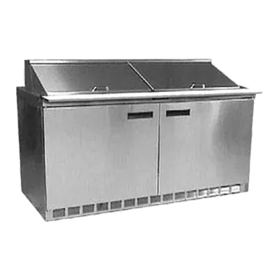 Unleash potential with a versatile companion. Introducing the Delfield UC4464N-24M Refrigerated Counter, Mega Top Sandwich/Salad Unit. Designed for commercial restaurant use, this two-section refrigerator offers a reduced height of 64" and a spacious 21.60 cubic feet capacity. With two doors and two 1/1 GN shelves, you'll have ample storage space for all your ingredients. The stainless steel top comes with a convenient polyethylene cutting board and 24 1/6 size plastic pans, allowing for efficient food preparation and organization. The stainless steel front and sides ensure durability and easy cleaning, while the ABS interior sides add extra protection. Equipped with a front-breathing rear-mounted refrigeration system and a powerful 1/2 hp compressor, this unit guarantees optimal cooling performance. With 3" casters for easy mobility, cUL, UL, and NSF certifications, the Delfield UC4464N-24M is the perfect addition to any commercial kitchen.