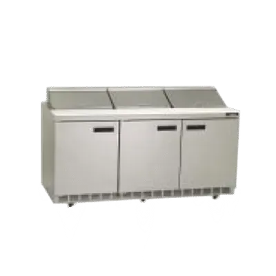 Master efficiency with an exceptional upgrade. Introducing the Delfield UCD4472N-12 Refrigerated Counter, Sandwich / Salad Unit. This three-section unit is designed to meet the demands of a commercial restaurant setting, offering a reduced height for easy access and optimal space utilization. With a generous capacity of 24.80 cubic feet, it features six drawers and a stainless steel top with a polyethylene cutting board, providing ample storage and prep space. The unit also includes twelve 1/6 size plastic pans for convenient ingredient organization. Its stainless steel front and sides ensure durability and easy cleaning, while the ABS interior sides add an extra layer of protection. Equipped with a front-breathing rear-mounted refrigeration system and 3" casters for mobility, this unit is both efficient and versatile. Trust Delfield, a reputable vendor in the industry, to deliver a reliable and high-performing refrigerated counter for your commercial restaurant needs.