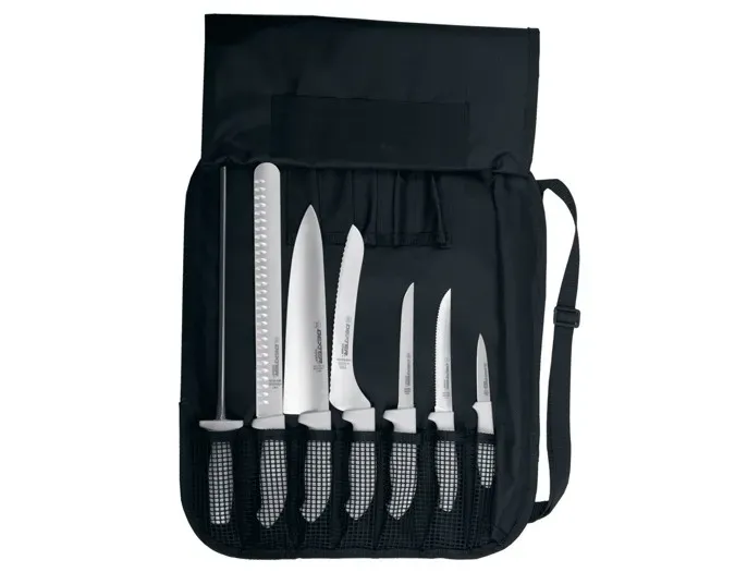 Precision in every dish is guaranteed with the Dexter Russell, 20153, Cutlery Set. This high-quality cutlery set is a must-have for any commercial restaurant. With its 7 pc. Sofgrip cutlery set, white handles, this set offers both style and functionality. Each piece is designed to provide the perfect balance and grip, ensuring precise cuts every time. The set includes all the essential knives needed in a professional kitchen, from a chef's knife to a paring knife. Whether you're slicing, dicing, or chopping, this cutlery set will make your tasks easier and more efficient. Upgrade your kitchen with the Dexter Russell, 20153, Cutlery Set and experience the difference in quality and performance.