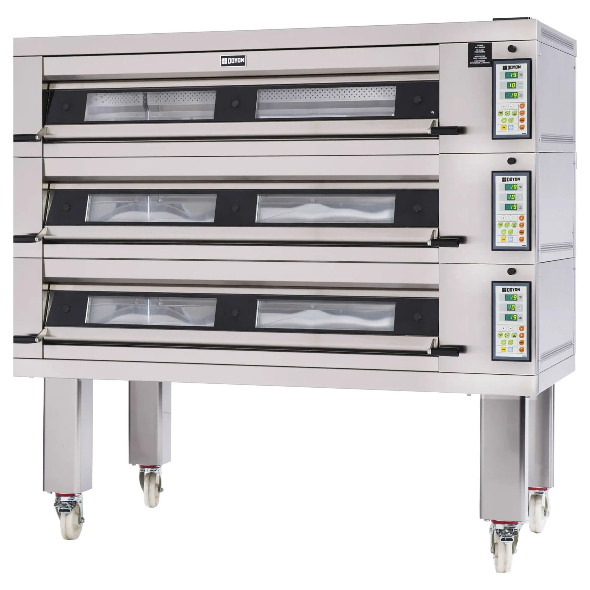 Introducing the Doyon-Nuvu 4T-3 Electric Deck-Type Oven, the perfect addition to any commercial restaurant kitchen. Streamline operations effortlessly with this artisan stone triple deck oven. With a capacity of four pans per deck, you can bake a variety of delicious dishes simultaneously. The individual digital electronic temperature control allows for precise cooking, ensuring consistent results every time. The self-contained steam injection per deck ensures your baked goods come out moist and flavorful. The energy miser/governor feature helps you save on energy costs while maintaining optimal performance. The 8" deck height is standard, providing ample space for your culinary creations. This oven also includes a stand and oven cover for added convenience. ETL, NSF, CE, and ISO certified, this oven guarantees safety and quality. Elevate your restaurant's baking game with the Doyon-Nuvu 4T-3 Electric Deck-Type Oven.
