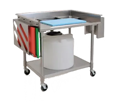 Revitalize operations with an indispensable asset. The Eagle Group MPT3042 Cart is a must-have for any commercial restaurant. This mobile prep table is designed to enhance efficiency and productivity in the kitchen. With its 47-1/4" wide stainless steel top and splash on the sides and rear, it provides a spacious and durable workspace for food preparation. The adjustable undershelf with a marine edge allows for convenient storage of utensils and supplies. The table also includes a 22-gallon removable waste tank, knife rack, stainless steel perforated half-size pans, and three poly cutting boards with a cutting board holder. Equipped with 5" poly swivel casters, this cart is easy to maneuver and can be securely locked in place. NSF certified, this cart meets the highest standards of cleanliness and safety. Upgrade your restaurant's efficiency with the Eagle Group MPT3042 Cart.