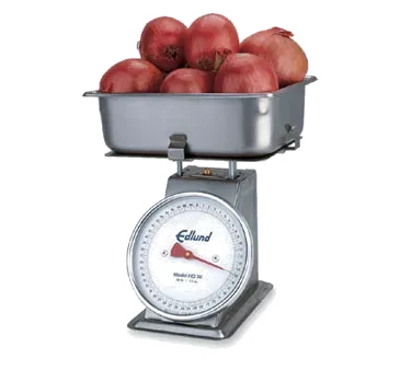 Equip for accuracy in restaurant service with the Edlund HD-50P Scale, Receiving, Dial. This top-loading counter model is designed to meet the demands of a commercial restaurant setting. With a 50 lb x 2 oz graduation, this scale ensures precise measurements for produce and other ingredients. The fixed dial and sloped face make it easy to read and operate, saving valuable time in a busy kitchen. Made with stainless steel construction, this scale is durable and built to withstand the rigors of a commercial environment. The scale comes with a cradle and a 4" half pan, providing convenience and versatility. NSF certified, you can trust the quality and safety of this scale. Whether you're weighing ingredients for recipes or portioning out servings, the Edlund HD-50P Scale is a reliable and essential tool for any commercial restaurant.