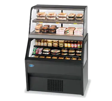 Indulge in the diversity of presentations with the Federal Industries CH4828SSD/RSS4SC Display Case. Designed for commercial restaurant use, this specialty display hybrid merchandiser offers a refrigerated self-serve bottom and a hot self-serve top, providing the perfect solution for showcasing a variety of food items. The refrigerated bottom features a black laminated exterior with black trim, tempered glass ends, and two tiers of black metal shelves. The hot self-serve top includes three hinged lift-up doors, adjustable stainless steel heated shelves, and sliding rear doors for easy access. With its horizontal top and front light, as well as a top light with lighted shelves, this display case ensures that your products are attractively illuminated. The CH4828SSD/RSS4SC also boasts a 1/2 HP motor for reliable performance. Trust Federal Industries to deliver a high-quality display case that meets your restaurant's needs.