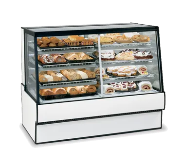 Transform the experience in your commercial restaurant with the Federal Industries SGR5942DZ Display Case. This high-volume vertical dual zone bakery case is designed to meet the demands of a busy kitchen. With a refrigerated left side and non-refrigerated right side, you can showcase a variety of baked goods while keeping them at the perfect temperature. The adjustable temperature control allows you to customize the settings to suit your needs. The sloped thermopane tilt-front glass and LED top light ensure maximum visibility and attract customers' attention. The two tiers of adjustable white wire shelves provide ample space for displaying your delicious creations. The glass sliding rear doors and tempered glass ends make it easy to access and restock your products. Choose from a selection of laminates with black trim to match your restaurant's aesthetic. Upgrade your bakery display with the Federal Industries SGR5942DZ Display Case and watch your sales soar.