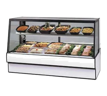 Introducing the Federal Industries SGR5948CD Display Case, Refrigerated Deli - the ultimate solution for versatile presentation in commercial restaurants. This high-volume refrigerated deli case is designed to meet the demands of busy food establishments. With its self-contained refrigeration system and adjustable temperature control, you can ensure that your deli items are kept fresh and at the perfect temperature. The sloped thermopane tilt-front glass and LED top light provide excellent visibility, while the adjustable stainless steel mezzanine shelf allows for flexible display options. The glass sliding rear doors and removable rear wrapping board make it easy to access and serve your products. With a sleek white interior and tempered glass ends, this display case is not only functional but also visually appealing. Choose from a variety of laminate options with black trim to match your restaurant's aesthetic. Trust Federal Industries for reliable, durable, and efficient refrigerated deli solutions.