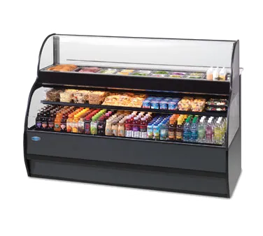 Unveil wonders with style and elegance with the Federal Industries SSRSP7752 Display Case. This specialty display sandwich or salad prep merchandiser is designed for commercial restaurant use, offering a refrigerated self-serve bottom and a top prep area. The stainless steel condiment well accepts foodservice pans, while the 10-inch deep removable work surface provides ample space for food preparation. The tempered lift-up front glass allows for easy access and visibility of the products. The refrigerated self-serve bottom features a black exterior, LED top and shelf lights, and a solid black shelf tier. The black interior with tempered glass ends adds a touch of sophistication, while the energy-saving night curtain helps conserve energy. With ECM fan motors and a PTC condensate evaporator, this display case is both efficient and reliable. The Federal Industries SSRSP7752 is DOE 2012 compliant and UL EPH CLASSIFIED, ensuring its quality and safety. Elevate your restaurant's display and keep your products fresh with this exceptional display case.