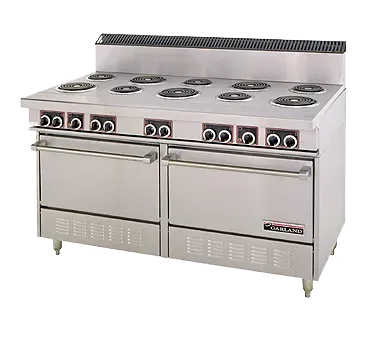 Enhance your restaurant's efficiency with the Garland/US Range SS684, a top-of-the-line 60" electric restaurant range. Designed for commercial restaurant use, this range features 10 high-performance sealed element burners, allowing for precise and efficient cooking. The two standard ovens provide ample cooking space, while the 10" high backguard ensures safety and protection. With its all stainless steel exterior finish and 6" stainless steel legs, this range is not only durable but also easy to clean and maintain. The Garland/US Range SS684 has a power output of 33 kW, making it a powerful and reliable choice for any busy kitchen. Certified by CE, cCSAus, and NSF, this range meets the highest industry standards. Upgrade your restaurant's cooking capabilities with the Garland/US Range SS684 and experience enhanced efficiency and performance.
