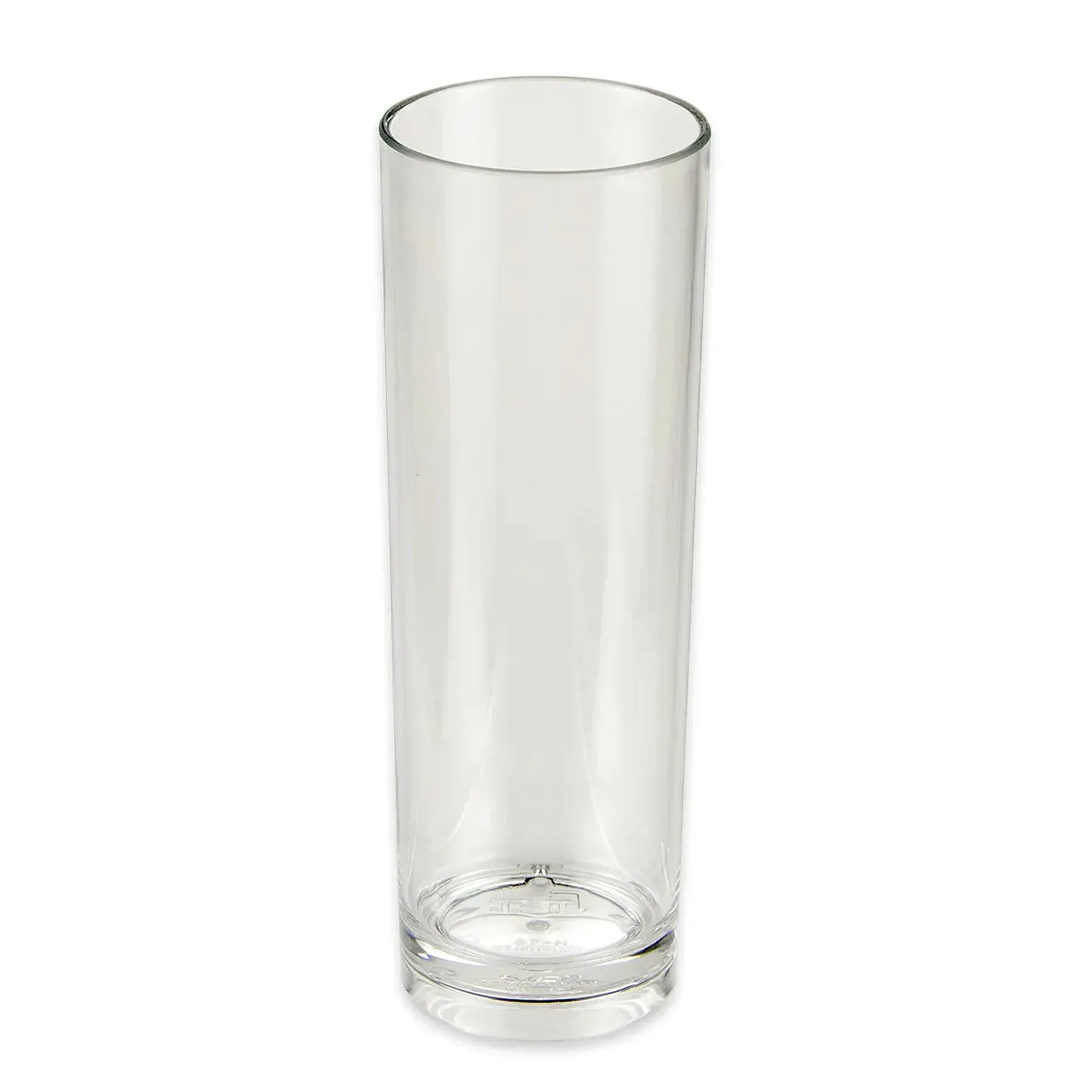 Measuring 2-1/2 inches in diameter and standing 7 inches tall, this glass boasts a sleek and modern profile that fits comfortably in hand while adding a touch of sophistication to your table settings. The clear SAN (Styrene Acrylonitrile) material not only provides a crystal-clear view of the drink but also ensures durability and longevity, making it a practical choice for high-traffic restaurant environments.