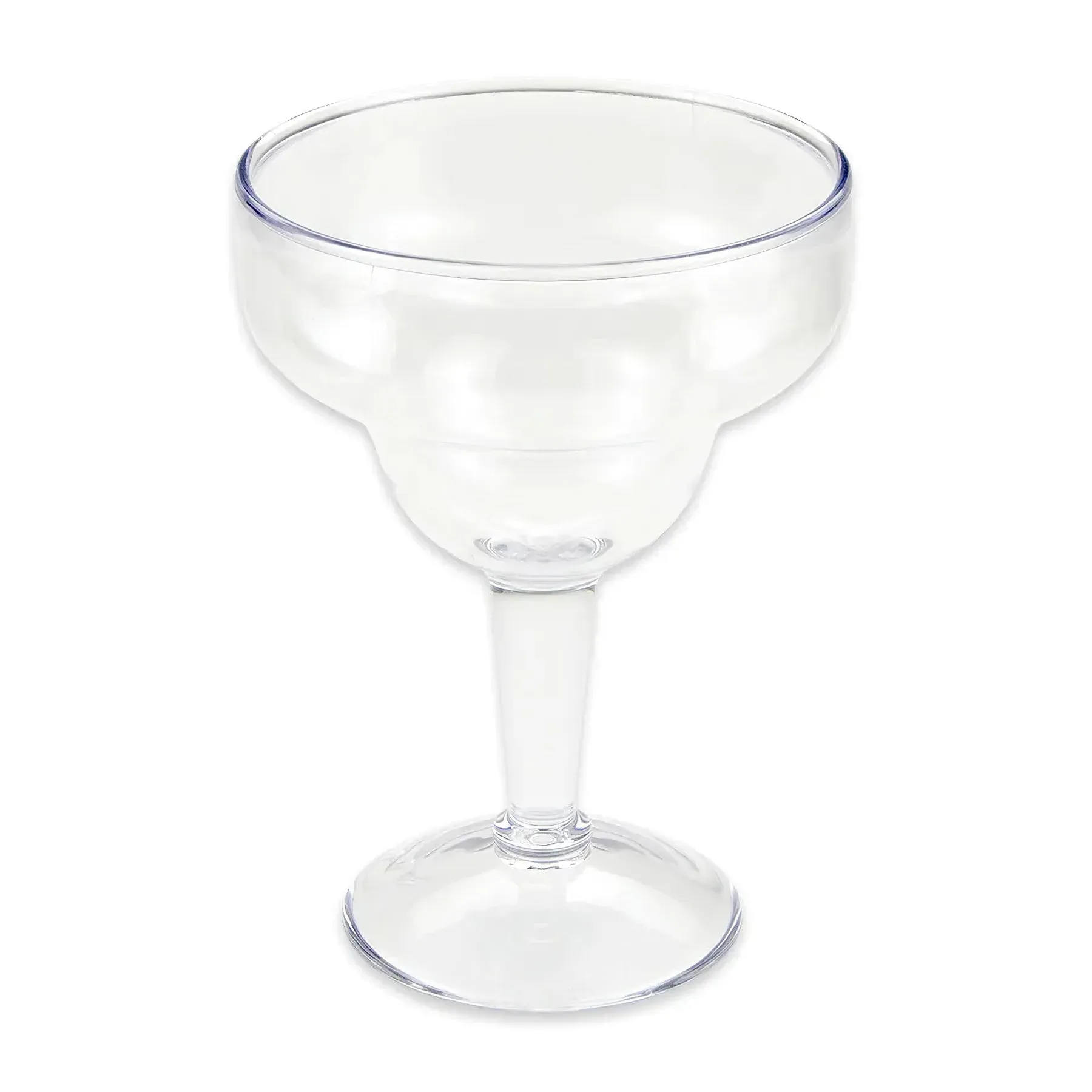 The Super Margarita Glass measures 6-1/4 inches in diameter and stands 8-1/2 inches tall, making it a striking addition to any table setting. Crafted from durable SAN (Styrene Acrylonitrile), this clear glass offers the look and feel of glass while providing superior shatter resistance, ensuring longevity and safety in a busy restaurant environment.