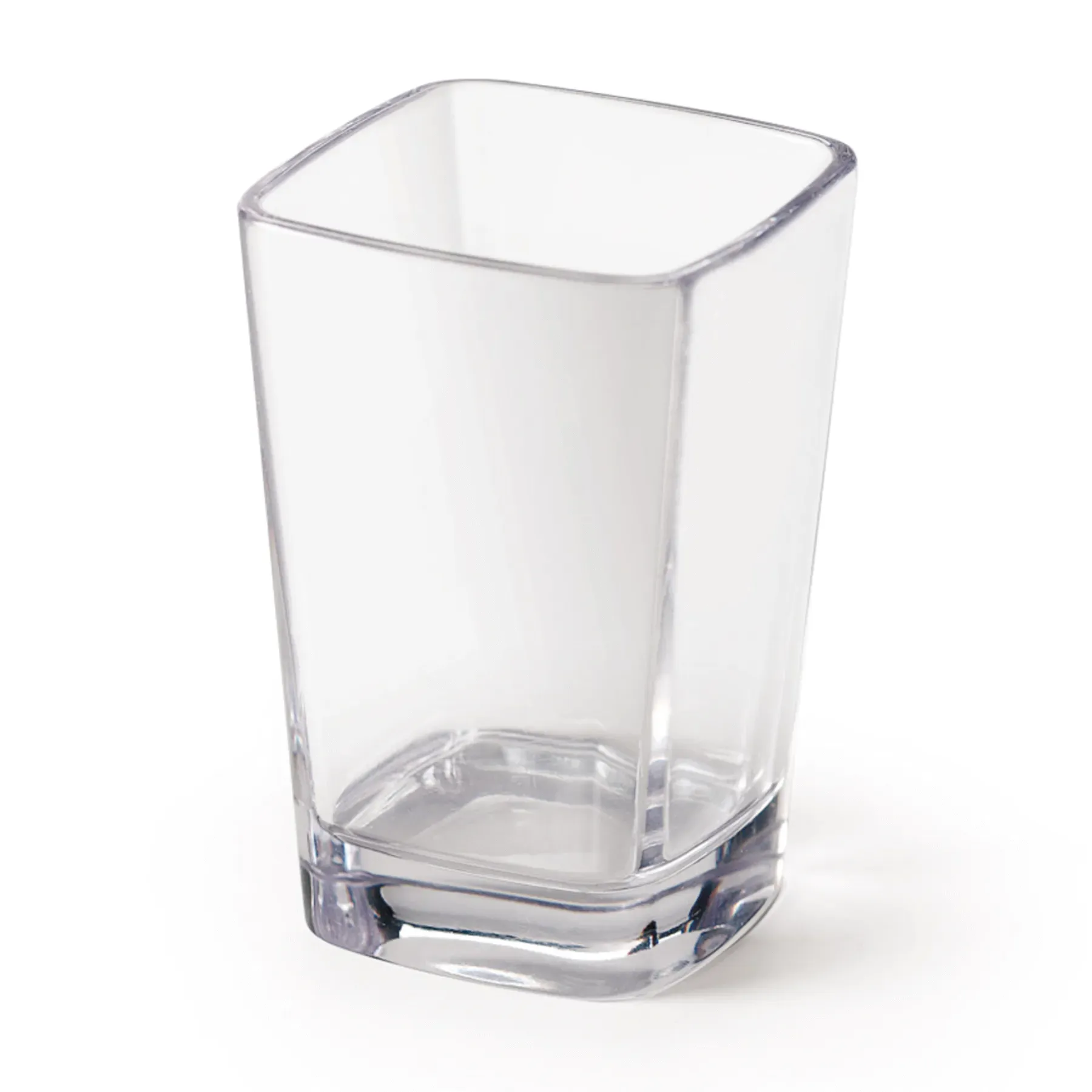 Crafted from clear SAN material, the Petite Dessert/Shot Glass boasts a sleek and modern square design, measuring 1-9/10" x 1-9/10" x 2-9/10"H. Its compact dimensions make it an ideal choice for serving petite desserts, layered shots, or even creative appetizers, ensuring that each serving is as visually appealing as it is delicious.