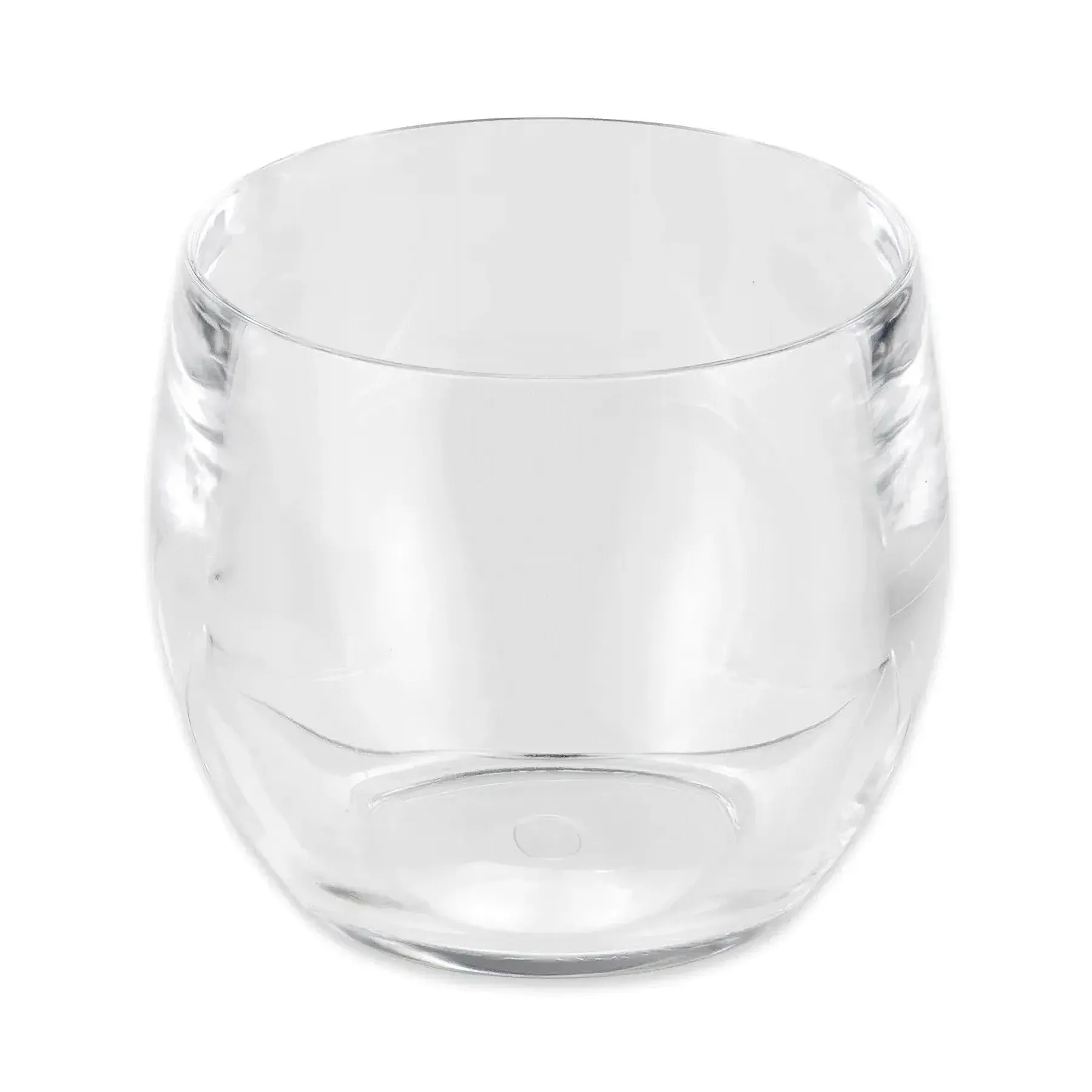 The clear construction of the GET Enterprises Stemless Wine Glass allows the rich colors of your wines to shine through, enhancing the visual appeal of each pour. Its ergonomic shape fits comfortably in the hand, providing a pleasant drinking experience for your guests.
