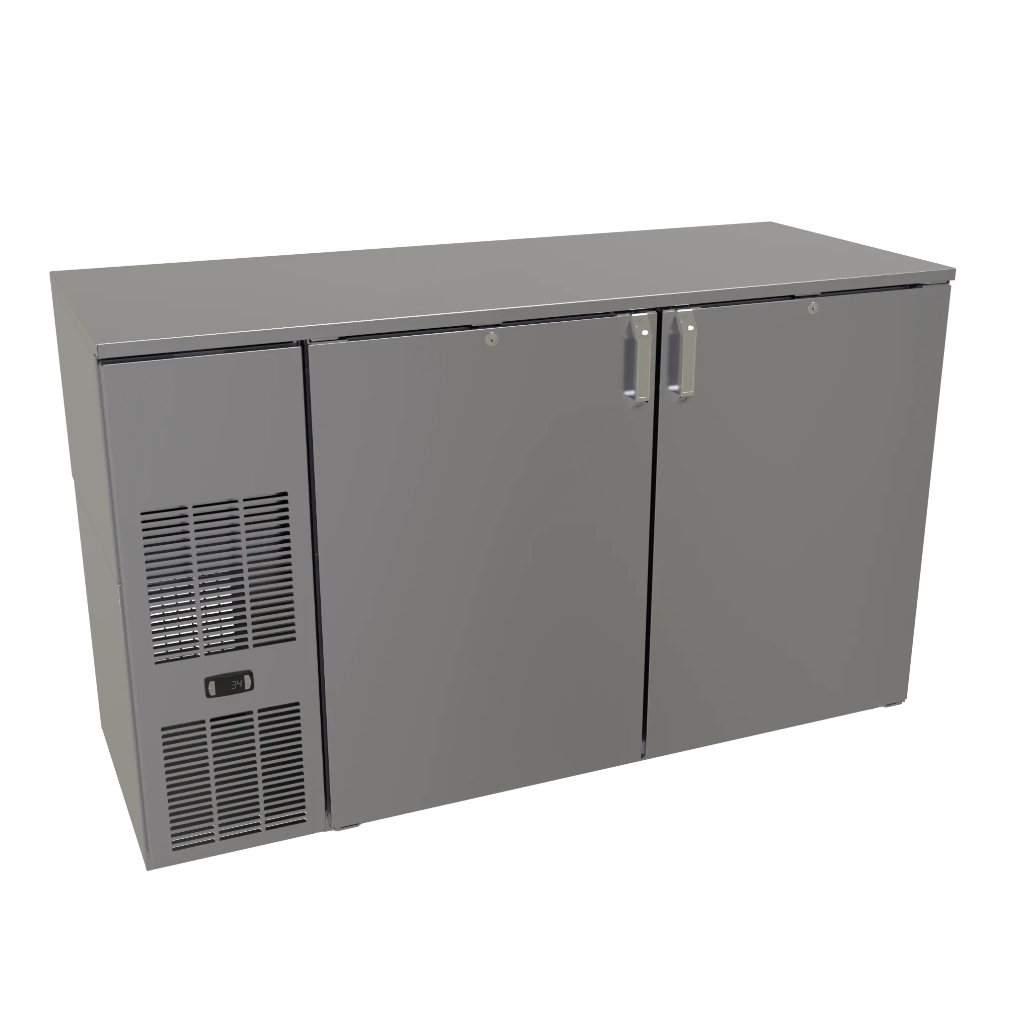 Introducing the Glastender C1FB60 Back Bar Cabinet, Refrigerated a must-have for any modern setup in a commercial restaurant. This sleek and efficient cooler is designed with a bar profile, making it perfect for front-service applications. With a spacious 60"W two-section design and a 20"W door opening, it offers ample storage space for your beverages and ingredients. The self-contained refrigeration system ensures optimal cooling performance, while the LED interior lighting enhances visibility and adds a touch of elegance. Made with a stainless steel interior, this back bar cabinet is not only durable but also NSF Standard 7 certified for open food storage, guaranteeing the safety of your products. The front venting feature allows for easy installation, and the 1/4 HP compressor ensures efficient operation. Upgrade your restaurant's beverage service with the Glastender C1FB60 Back Bar Cabinet, Refrigerated, and experience the perfect blend of functionality and style.