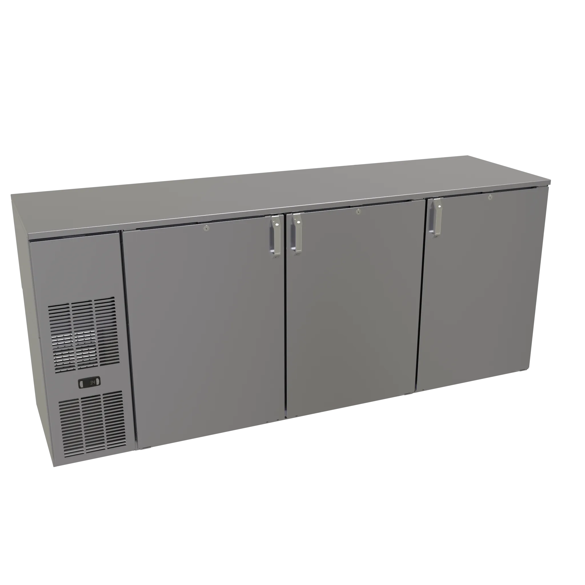 Effortless solutions for modern spaces, the Glastender C1FB84 Back Bar Cabinet is the perfect addition to any commercial restaurant. With its sleek bar profile and stainless steel interior, this three-section cooler is designed for front service and offers a generous 84" width. The self-contained refrigeration system ensures optimal temperature control, while the LED interior lighting provides excellent visibility of your beverages. The front venting feature allows for easy installation, making it ideal for tight spaces. This back bar cabinet is NSF Standard 7 certified for open food storage, guaranteeing the highest level of food safety. The Glastender C1FB84 is powered by a reliable 1/4 HP compressor and is ETL-Sanitation approved. Whether you're running a busy bar or a high-end restaurant, this refrigerated back bar cabinet is a must-have for keeping your drinks chilled and your operation running smoothly.