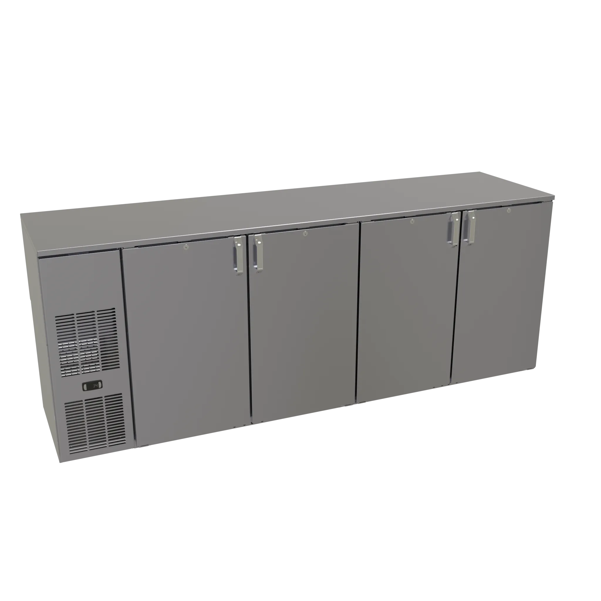 Design a dynamic restaurant environment with the Glastender C1FB92 Back Bar Cabinet. This refrigerated unit is perfect for commercial restaurant use, offering a sleek and functional design. With a four-section bar profile and a spacious 92"W size, it provides ample storage space for your beverages. The self-contained refrigeration system ensures optimal cooling performance, while the LED interior lighting enhances visibility and adds a touch of elegance to your bar area. The front venting feature allows for easy installation, and the stainless steel interior ensures durability and easy cleaning. The Glastender C1FB92 Back Bar Cabinet is NSF Standard 7 certified for open food storage, making it suitable for storing perishable items. With its 1/4 HP compressor and ETL-Sanitation certification, this back bar cabinet is a reliable and efficient choice for any commercial restaurant.