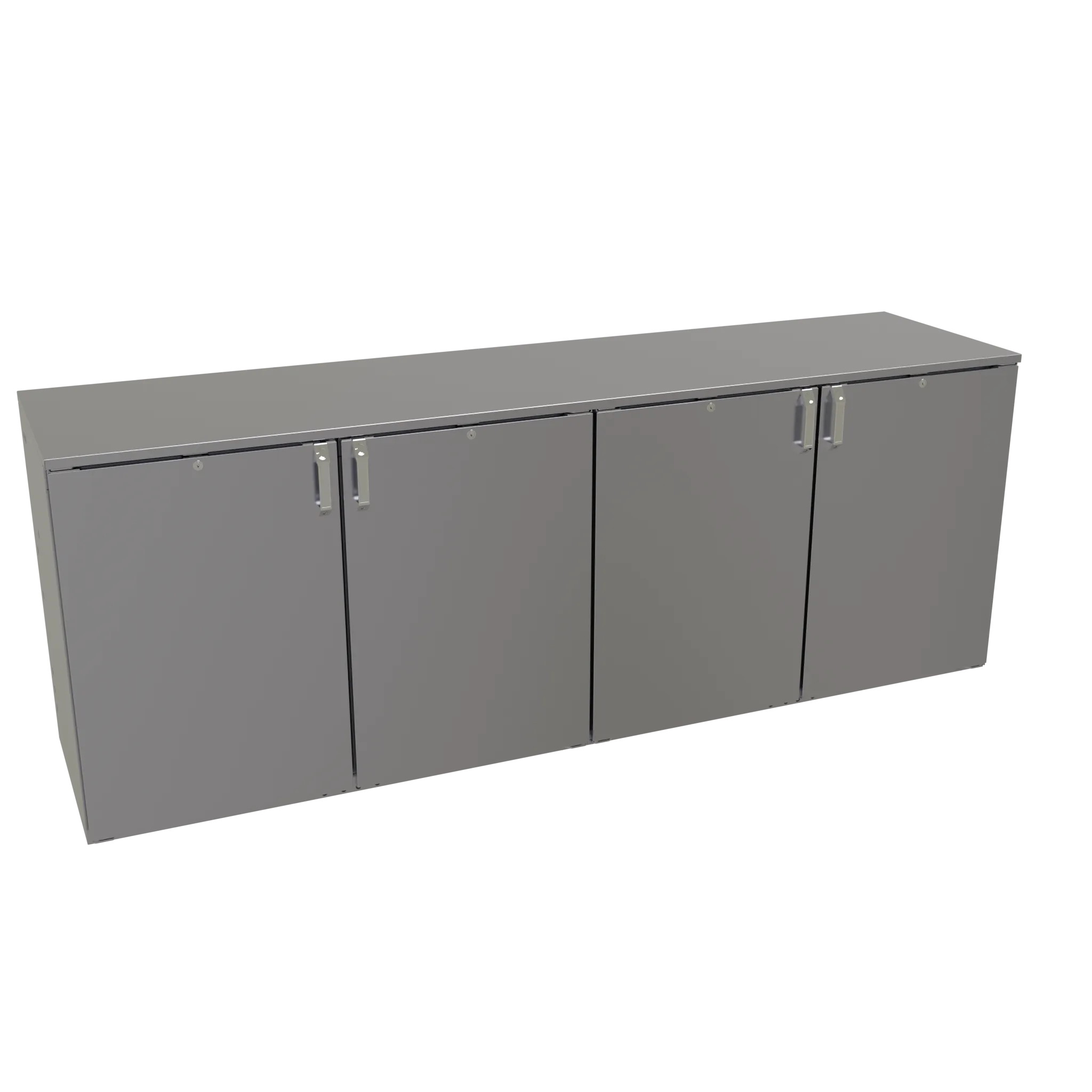 Introducing the Glastender C1RB96 Back Bar Cabinet, Refrigerated a must-have for commercial restaurants looking to maximize efficiency discreetly. This four-section cooler is designed for remote refrigeration, ensuring optimal storage conditions for your open food items. With a sleek bar profile and a 96" width, this back bar cabinet offers ample space for your beverages and ingredients. The 20" wide door openings make it easy to access your supplies, while the LED interior lighting enhances visibility. The stainless steel interior not only adds durability but also meets NSF Standard 7 for open food storage, ensuring the safety of your products. The C1RB96 is cETLus and ETL-Sanitation certified, guaranteeing its quality and reliability. Upgrade your restaurant's storage capabilities with the Glastender C1RB96 Back Bar Cabinet, Refrigerated, and experience the convenience and efficiency it brings to your establishment.