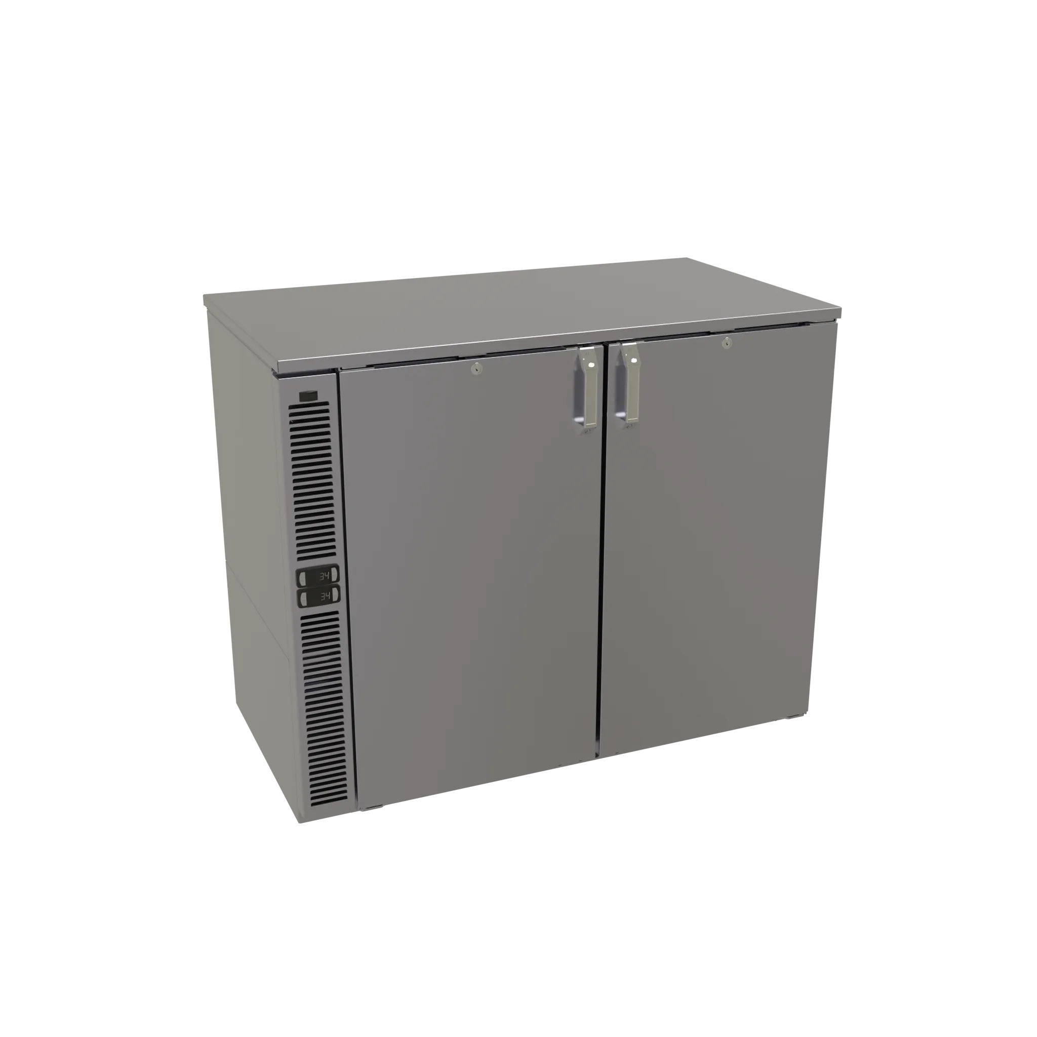 Effortless solutions for your commercial restaurant needs start with the Glastender C2SB44 Back Bar Cabinet. This refrigerated unit is designed to meet the demands of a busy bar or restaurant, with a spacious 44"W two-section layout and a convenient side service design. The self-contained refrigeration system ensures optimal cooling performance, while the LED interior lighting provides excellent visibility of your beverages. The stainless steel interior not only adds durability but also makes cleaning a breeze. With a front venting system, this back bar cabinet can be seamlessly integrated into your bar profile. The 16"W door opening allows for easy access to your drinks, making it efficient for bartenders during peak hours. NSF Standard 7 certification ensures that this cabinet meets the highest standards for closed container products. Trust Glastender to deliver reliable and efficient refrigeration solutions for your commercial restaurant.