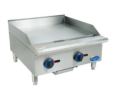 Introducing the Globe C24GG Gas Griddle, a must-have for commercial restaurant owners looking to simplify their operations. This countertop griddle from Globe is designed to deliver exceptional performance and efficiency, making it an essential addition to any professional kitchen. With its 3/4" polished griddle plate and U-style burner, this griddle provides precise heat control every 12" and a flame every 6", ensuring even cooking results. The adjustable pilots with front access and cool-to-touch front edge add convenience and safety to the cooking process. Made with stainless steel construction and featuring adjustable legs with stainless steel feet, this griddle is built to withstand the demands of a busy kitchen. The 3-1/4" back and side splash and 3-1/4" trough help contain any spills, making cleanup a breeze. This griddle operates on natural gas and comes with an LP conversion kit included. With its CSA Sanitation and NSF certifications, you can trust the quality and reliability of the Globe C24GG Gas Griddle. Upgrade your restaurant's cooking capabilities with this top-of-the-line griddle.