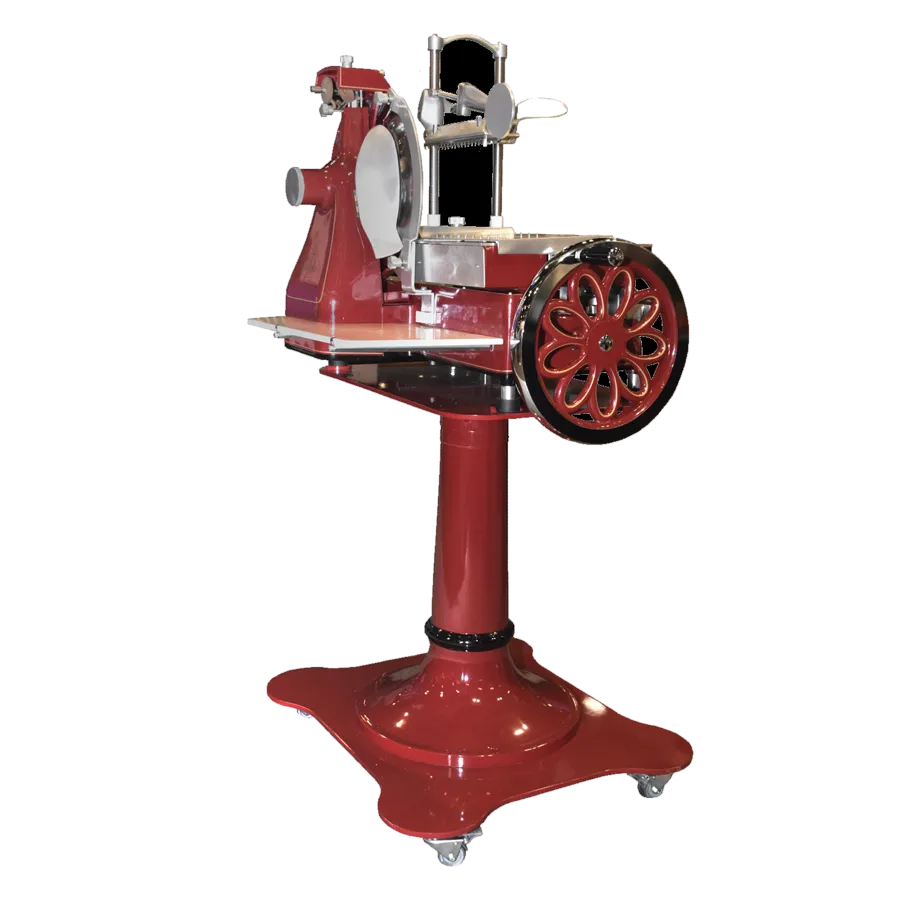 Cook with confidence and flair using the Globe FS14 Food Slicer. This traditional premium flywheel slicer is Italian-designed and perfect for commercial restaurant use. With its 14" chrome-plated carbon steel blade, you can effortlessly slice through a variety of ingredients with precision. The slicer offers nine thickness adjustments up to 2.5mm, allowing you to customize the thickness of your slices to suit your culinary needs. It also features a blade protection ring and a built-in sharpener, ensuring the longevity and sharpness of the blade. The aluminum receiving shelf provides a convenient space to collect the sliced ingredients, while the aluminum construction with stainless steel trim ensures durability and easy cleaning. The slicer's baked enamel paint, gold, and black detailing add a touch of elegance to any kitchen. ETL-Sanitation listed, this Globe FS14 Food Slicer is a reliable and efficient tool that will enhance your restaurant's food preparation process.