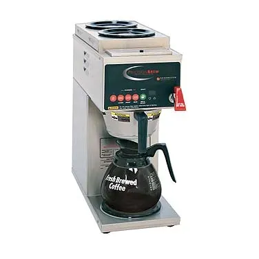 Invest in quality for efficiency with the Grindmaster-cecilware B-3 Coffee Brewer for Decanters. This precision brewer is designed for commercial restaurant use, offering automatic fill with a pour-over option for convenience. The single brewer is compatible with decanters (sold separately) and features three in-line warmers, including one lower and two upper warmers, ensuring your coffee stays hot and ready to serve. The digital controls and sleep mode make operation a breeze, while the hot water faucet provides versatility for tea or other hot beverages. The stainless steel brew basket and construction ensure durability and easy cleaning, while the UL and NSF certifications guarantee safety and quality. Upgrade your coffee brewing capabilities with the Grindmaster-cecilware B-3 Coffee Brewer for Decanters and experience efficient and reliable coffee service in your commercial restaurant.