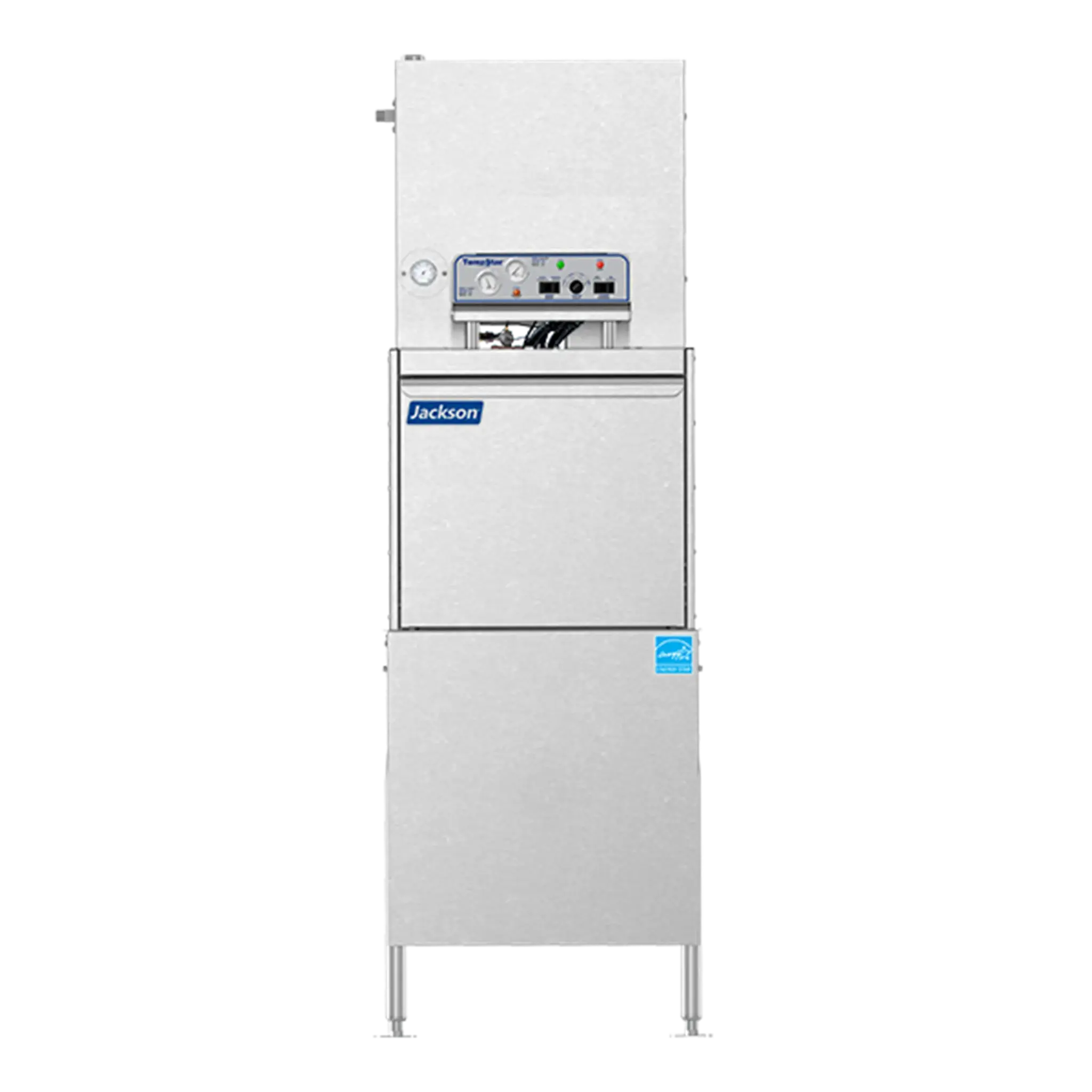 The TempStar front-load with ventless and energy recovery provides a great solution for applications with limited space. No hood or dishtables are required with this model, plus it comes with all the same great standard features as the TempStar ventless model. Features include four selectable timed cycles, a built-in booster heater with Sani-Sure final rinse, specially designed stainless steel nozzles that provide superior cleaning action, a door interlock and more. Like all Jackson ventless models, this space-saving unit operates on a single cold water connection and provides Clean the First Time results.