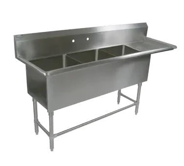 Upgrade your restaurant's service with the versatile John Boos 3PB204-1D24R Sink. This three-compartment sink is designed to meet the demands of a busy commercial kitchen. With an overall size of 88-316W x 25-12D x 44-116H, it provides ample space for washing, rinsing, and sanitizing dishes. The three 20W x 20 front-to-back x 14 deep compartments allow for efficient workflow, while the 24 right drainboard offers convenient drying space. The 10H boxed backsplash with a 45 top and 2 return ensures a clean and hygienic environment. Made of durable 16300 stainless steel, this sink is built to withstand the rigors of daily use. The adjustable legs and bullet feet provide stability, while the NSF and CSA-Sanitation certifications guarantee its quality. Upgrade your restaurant's efficiency and cleanliness with the John Boos 3PB204-1D24R Sink.
