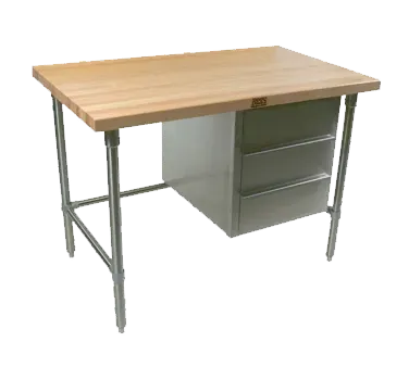 Upgrade your restaurant service with the John Boos BTNS01 Work Table. This versatile and durable table is designed specifically for commercial restaurant use. With its 48-inch width and 30-inch depth, it provides ample space for food preparation, making it ideal for busy kitchens. The 1-3/4 inch thick edge grain top is made from antimicrobial Northern Hard Rock Maple, ensuring a hygienic surface for food handling. The penetrating oil finish adds a touch of elegance while also protecting the wood from moisture and stains. The open cabinet base features three drawers, providing convenient storage for utensils, tools, and other kitchen essentials. The stainless steel bracings, legs, and bullet feet offer stability and durability, even in high-traffic areas. NSF certified and easy to assemble, this work table is a must-have for any commercial restaurant. Upgrade your kitchen today with the John Boos BTNS01 Work Table.