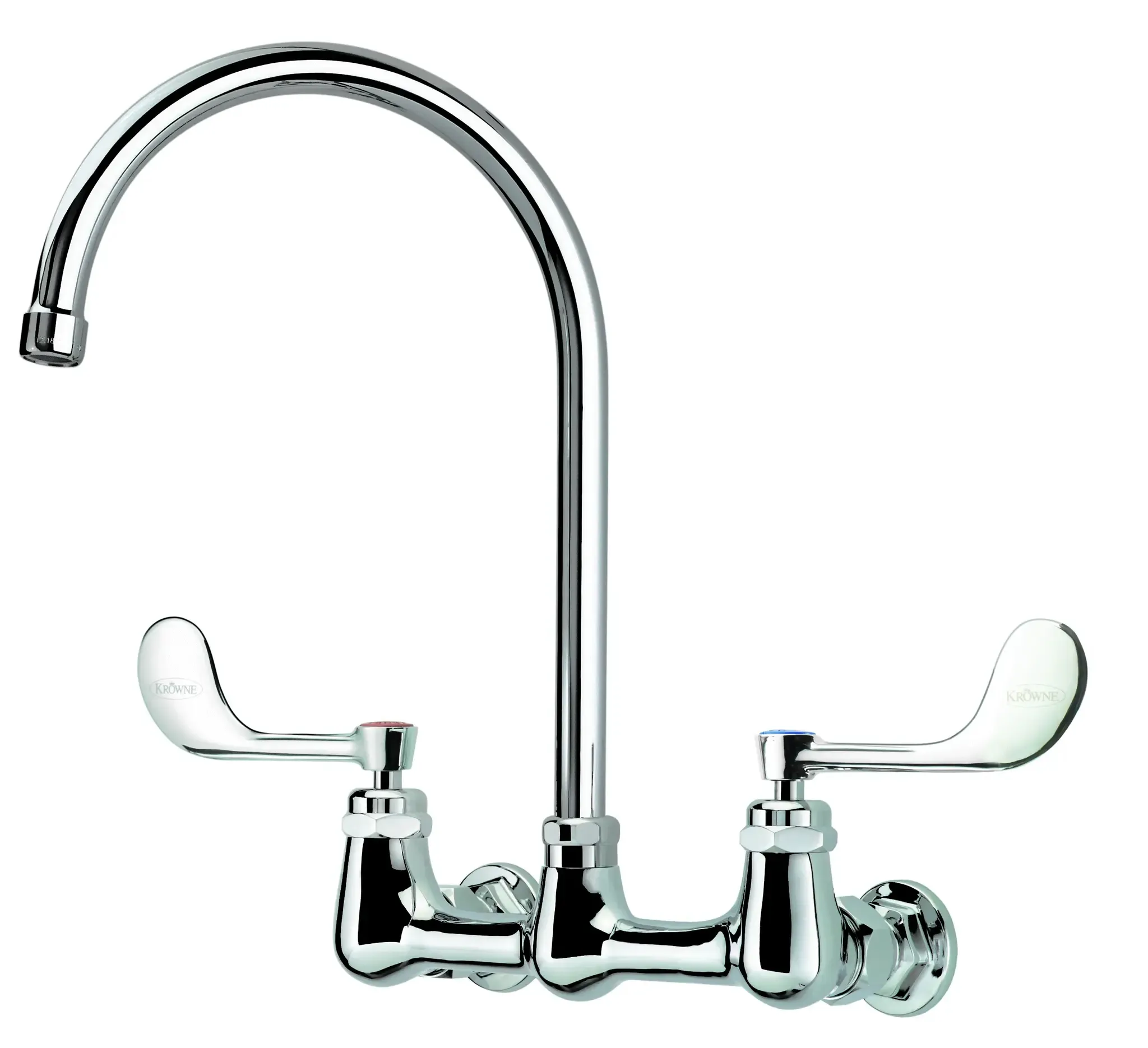 Unleash your inner chef with the Krowne Metal, 14-802L-W-E4, Gooseneck Faucet. This Royal Series 8" Wall Mount Faucet is designed to meet the demands of a commercial restaurant setting. With its 8-1/2" wide gooseneck spout, it provides ample clearance for filling large pots and pans. The VR wristblade handles offer precise control over water flow and temperature, allowing you to easily adjust it to your desired settings. The 1.5 GPM aerator ensures a steady and efficient water flow, saving you time and water consumption. Whether you're a professional chef or a passionate home cook, this gooseneck faucet is a must-have for any commercial kitchen. Upgrade your restaurant's functionality and style with the Krowne Metal, 14-802L-W-E4, Gooseneck Faucet.