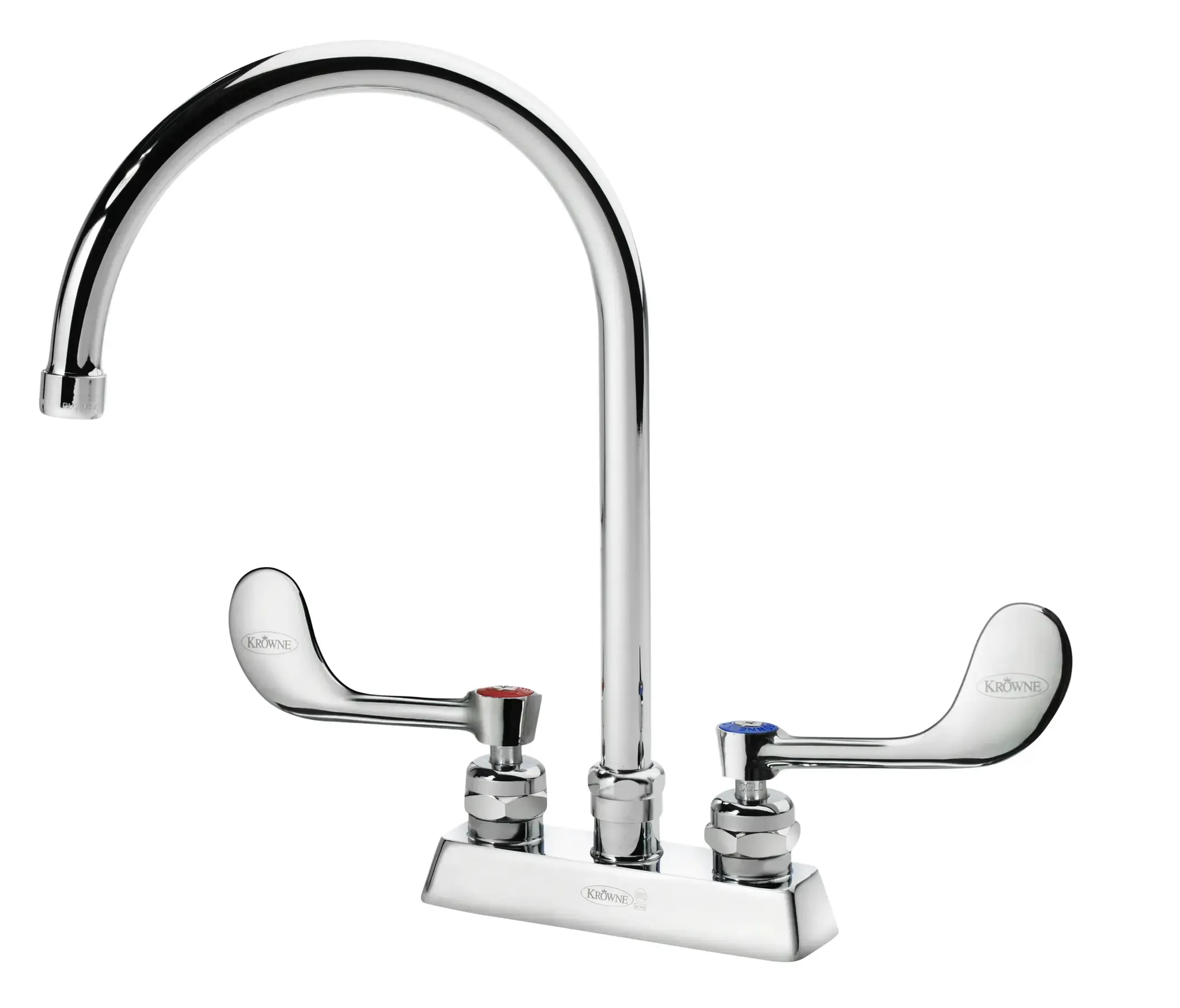 Maximize your food service potential with the Krowne Metal, 15-302L-W-E4 Gooseneck Faucet. This high-quality faucet is designed to meet the demands of a commercial restaurant setting, ensuring durability and reliability. The Royal Series 4" Deck Mount with 8-1/2" Gooseneck Spout provides ample clearance for filling large pots and pans, making it ideal for busy kitchens. The VR Wristblade Handles offer easy control and precision, allowing for precise water temperature and flow adjustments. With a 1.5 GPM aerator, this faucet promotes water conservation without compromising performance. The sleek design adds a touch of elegance to any commercial kitchen, while the sturdy construction ensures long-lasting use. Whether you're washing dishes, filling containers, or rinsing produce, the Krowne Metal Gooseneck Faucet is a reliable and efficient choice for your restaurant.
