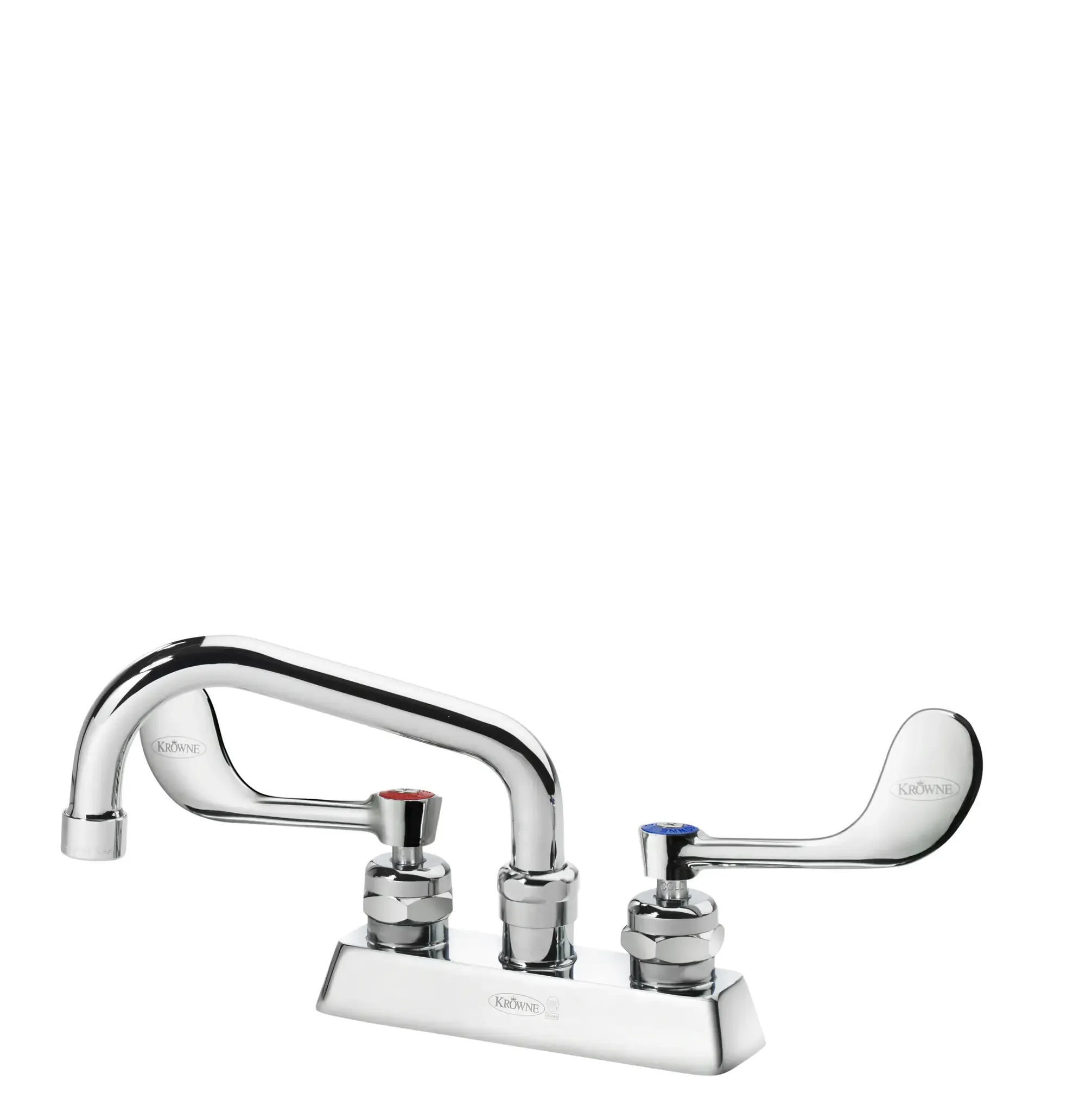 Maximize your food service potential with the Krowne Metal, 15-306L-W-E6, Deck Mount Faucet. This high-quality faucet is designed to meet the demands of a commercial restaurant setting, ensuring durability and reliability. The 4" deck mount with a 6" swing spout provides flexibility and convenience, allowing for easy filling of pots and pans. The VR wristblade handles offer precise control over water flow and temperature, ensuring efficient operation in a busy kitchen. With a 2.2 GPM aerator, this faucet helps conserve water without compromising performance. Whether you're running a bustling restaurant or a busy catering service, this deck mount faucet is a must-have for any commercial kitchen. Trust Krowne Metal to deliver the quality and functionality you need to excel in your food service business.