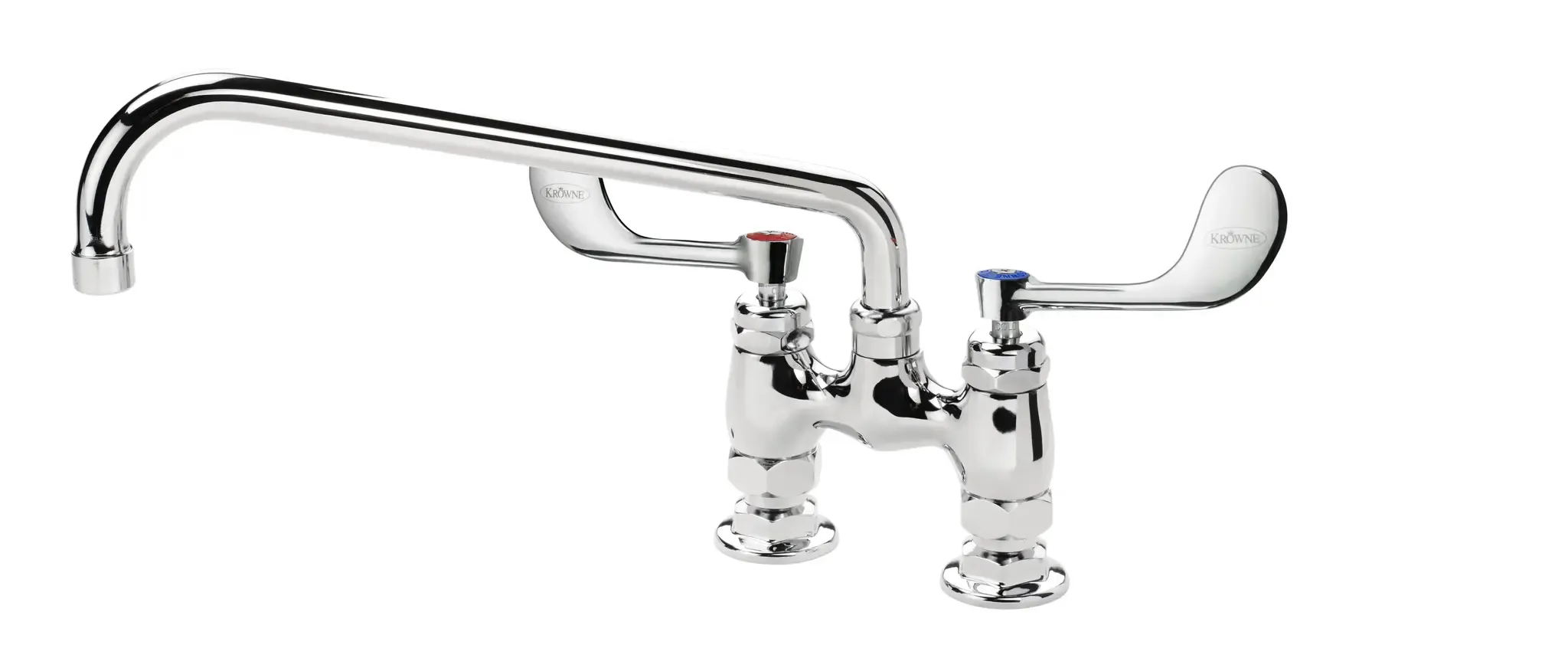 Discover kitchen perfection with the Krowne Metal, 15-412L-W-E4, Standard Faucet. This Royal Series faucet is designed to elevate your restaurant's efficiency and functionality. With its 4" raised deck mount and 12" swing spout, this faucet provides easy access to water wherever it's needed. The VR wristblade handles offer precise control and effortless operation, ensuring a smooth workflow in a busy kitchen environment. The 1.5 GPM aerator promotes water conservation without compromising performance, making it an eco-friendly choice for your establishment. Whether you're washing dishes, filling pots, or rinsing produce, this standard faucet is a reliable and essential tool for any commercial restaurant. Upgrade your kitchen with the Krowne Metal, 15-412L-W-E4, Standard Faucet and experience the perfect blend of functionality and style.