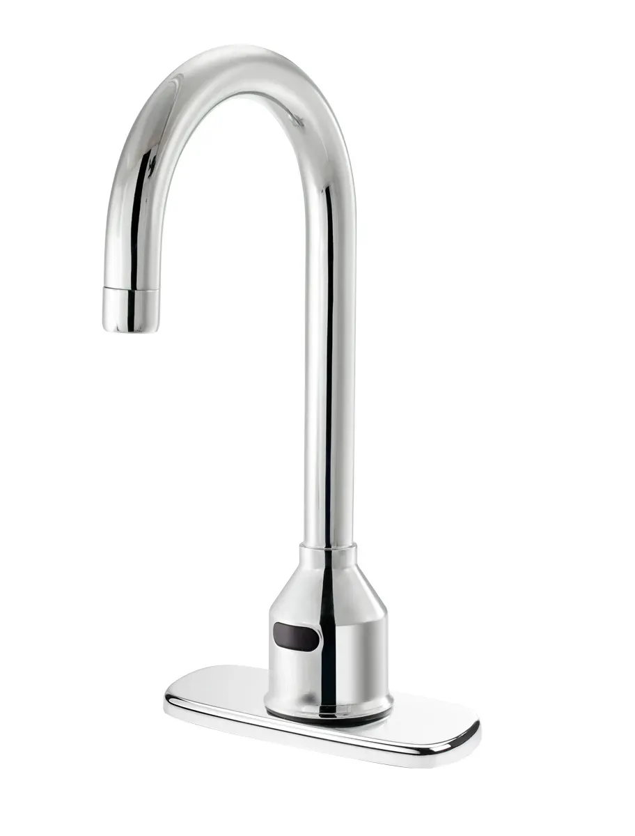 Introducing the Krowne Metal, 16-650P, Electronic Faucet, a must-have for any commercial restaurant looking to craft culinary wonders. This single hole deck mount sensor faucet is battery operated, ensuring convenience and flexibility in installation. With its 6" gooseneck and 4" deck plate, this faucet offers versatility and ease of use. The 1.50 GPM aerator provides a steady and efficient flow of water, perfect for busy kitchen environments. Designed with the needs of commercial restaurants in mind, this electronic faucet from Krowne Metal is a reliable and durable choice. The Royal Series Electronic Deck Mount Faucet is a top-quality product that combines functionality, style, and efficiency. Upgrade your restaurant's kitchen with the Krowne Metal, 16-650P, Electronic Faucet and experience the difference it makes in your culinary creations.