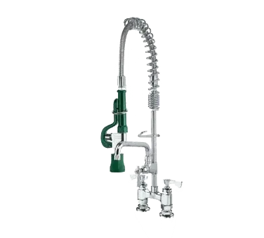 With its space-saving design, this pre-rinse faucet is perfect for maximizing your workspace. The add-on faucet provides additional convenience, allowing you to easily switch between tasks without the need for multiple faucets. The 8" spout ensures a steady and controlled flow of water, making it ideal for rinsing dishes, utensils, and other kitchen equipment. It is designed to meet the high standards of commercial kitchens, ensuring long-lasting performance. Upgrade your kitchen with the Krowne Metal, 18-408L, Pre-Rinse Faucet and experience improved efficiency and functionality.